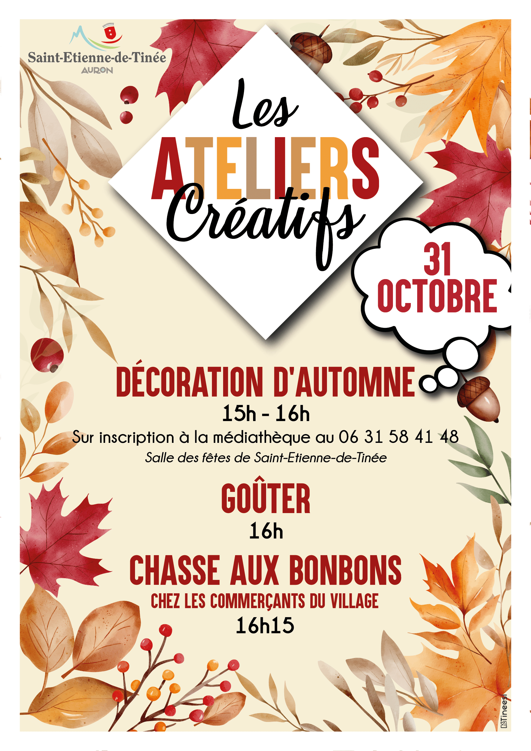 Fête d’automne avec les Ateliers créatifs “Décoration d’Automne” de 15h à 16h (inscriptions 06 31 58 41 48)