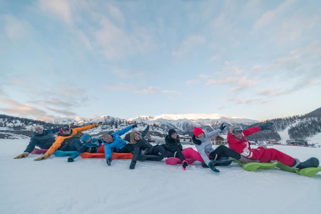 Luge gonflable sur laquelle vous vous élancez sur le ventre ! Activité ludique à pratiquer en famille ou entre amis après le ski !
