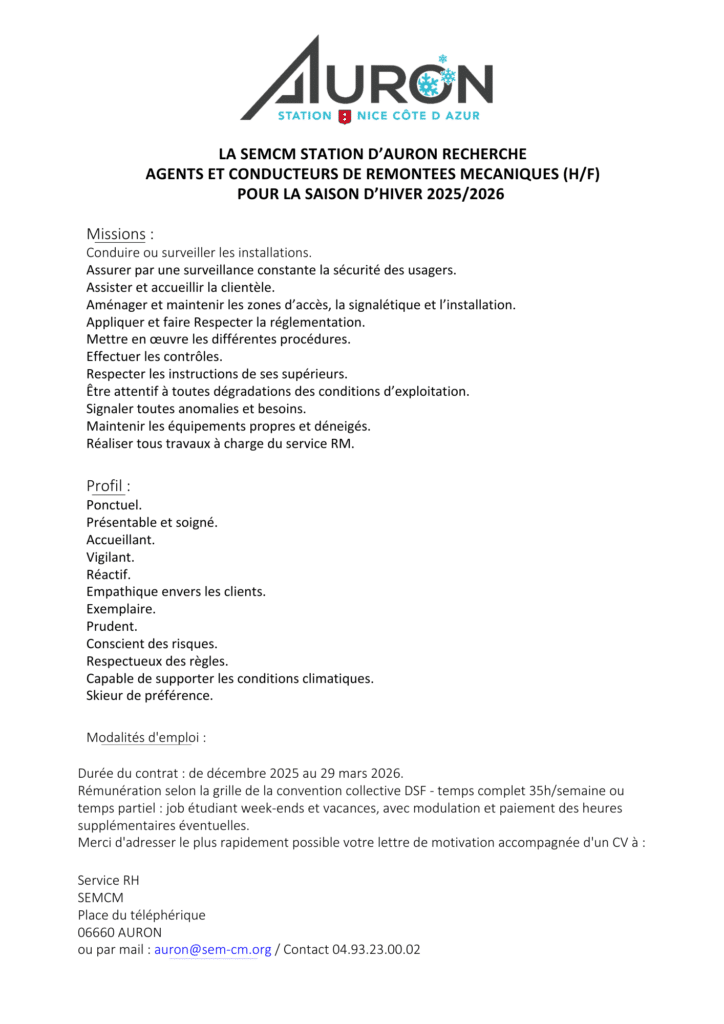 AGENT ET CONDUCTEUR DE REMONTÉES MÉCANIQUES