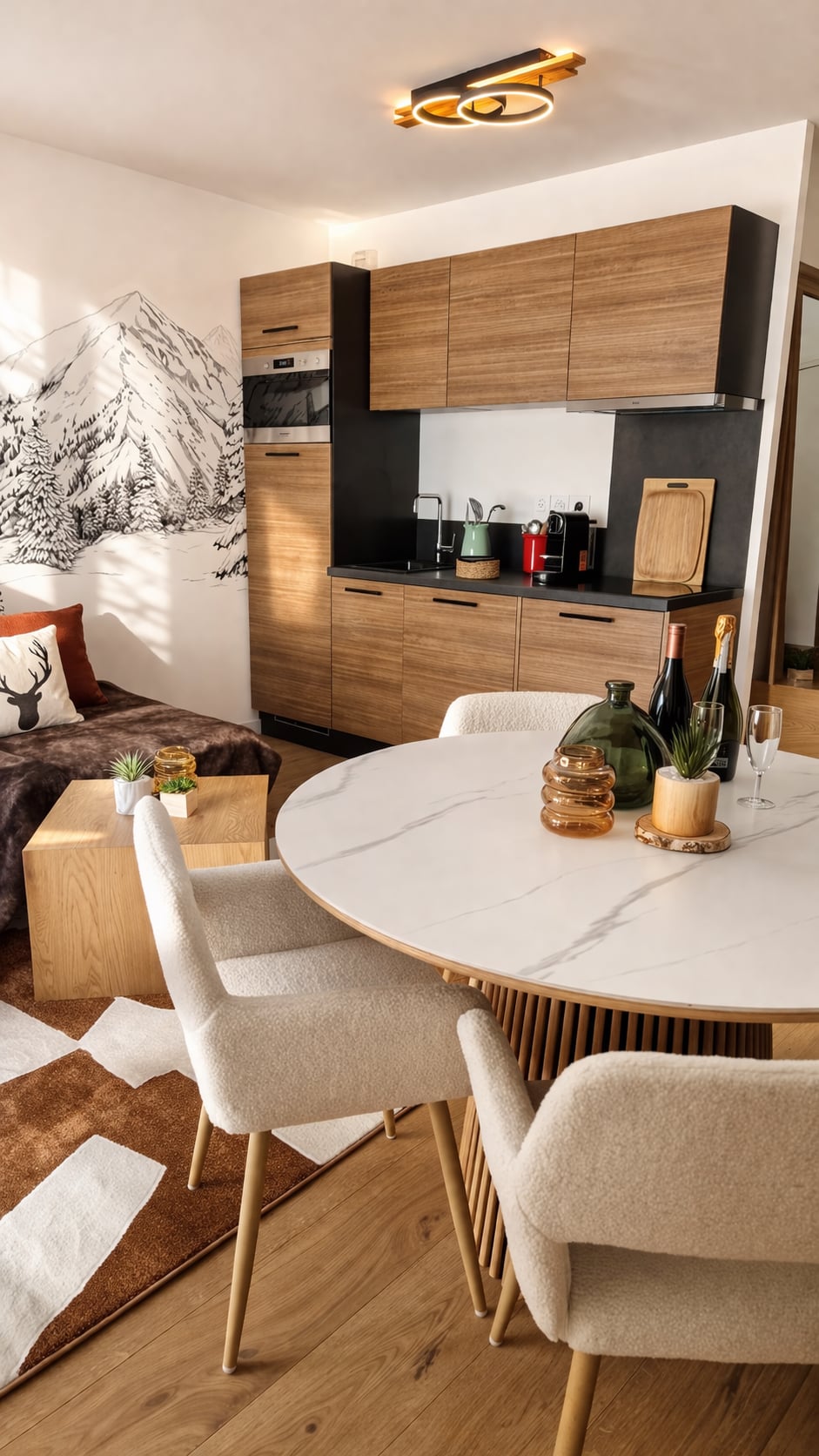 Idéal pour un séjour à la montagne, en couple ou en famille, le logement offre un cadre confortable et fonctionnel avec une pièce de vie agréable, une cuisine équipée (machine Nespresso, appareil à raclette), ainsi qu’un casier à ski et une place de parking en garage.