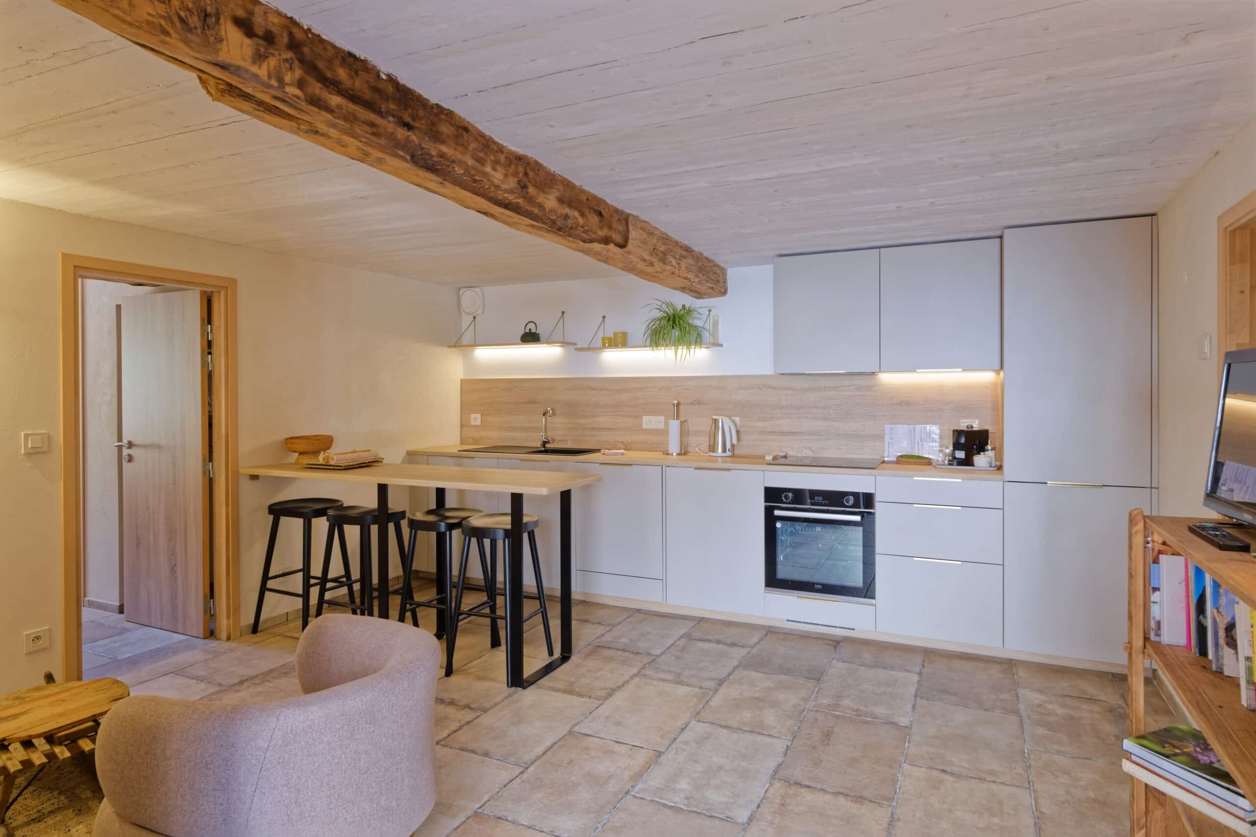 Situé au Rez de chaussée et doté d’une entrée indépendante, le gîte se compose d’un séjour cuisine toute équipée et de deux chambres attenantes avec salles de bain individuelles. Linge de lit et serviettes fournies. Le gite est entièrement non fumeur.